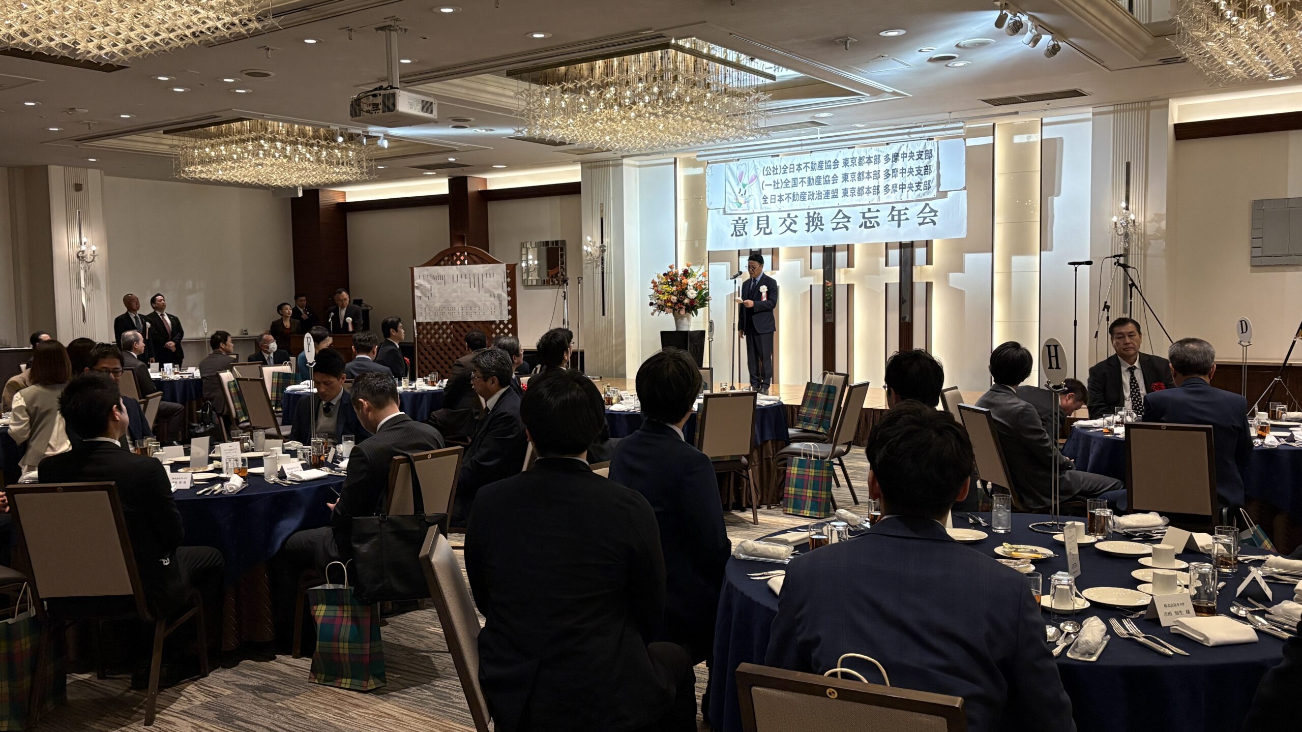 意見交換会・忘年会では、文部科学大臣(開催時)をはじめ衆議院議員、市長、都議会議員、市議会議員、協会役員の沢山のご来賓の方々をお迎えして、行政との「意見交換」をはじめ「会員親睦・情報交換の場」としての開催となりました。